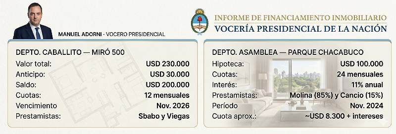 12 cuotas sin interés y USD 24.000 por mes: el esquema financiero de Adorni que investiga la Justicia