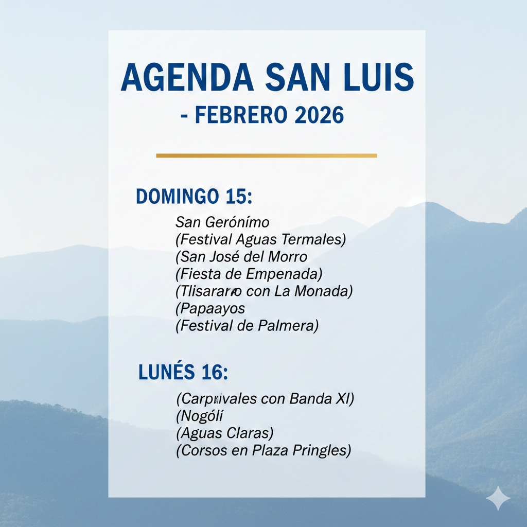 Durante este fin de semana y el feriado del lunes, la provincia de San Luis despliega una intensa agenda cultural. Con eventos destacados en San Gerónimo, Papagayos, Tilisarao y Nogolí, entre otros, la propuesta combina música folclórica, gastronomía regional y el color de los carnavales. Bandas de renombre nacional como Banda XXI, La Monada y Los Palmae encabezan las grillas de espectáculos que prometen convocar a miles de familias.
